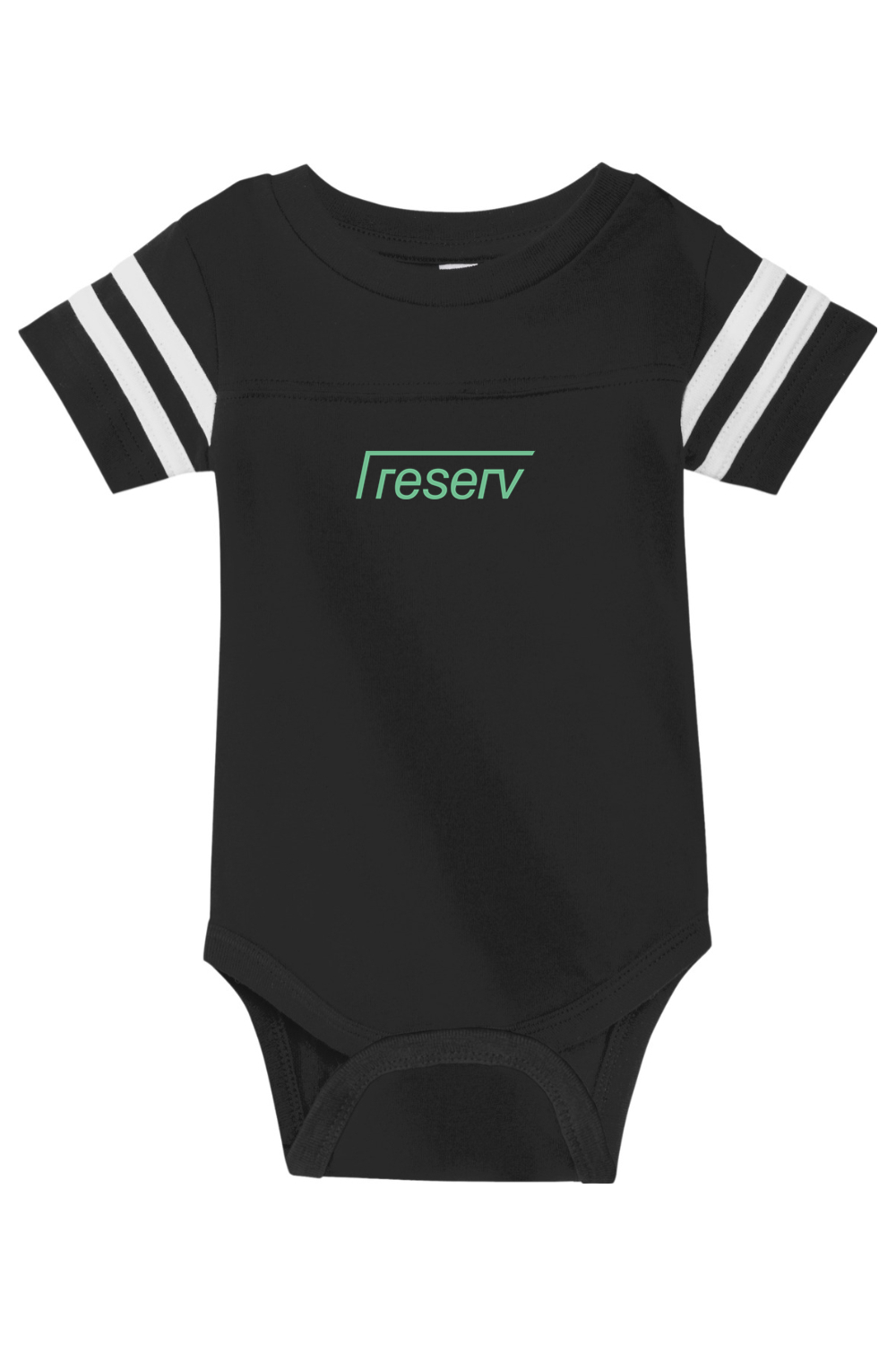 Now even the youngest fan can cheer on the team in style. Designed with contrasting sleeve stripes and a coverstitched yoke, this bodysuit delivers a sporty look with exceptional comfort. The piece is elevated with a high-quality DTF print with the Reserv logo, giving it a sharp, long-lasting design that adds extra spirit to every wear.